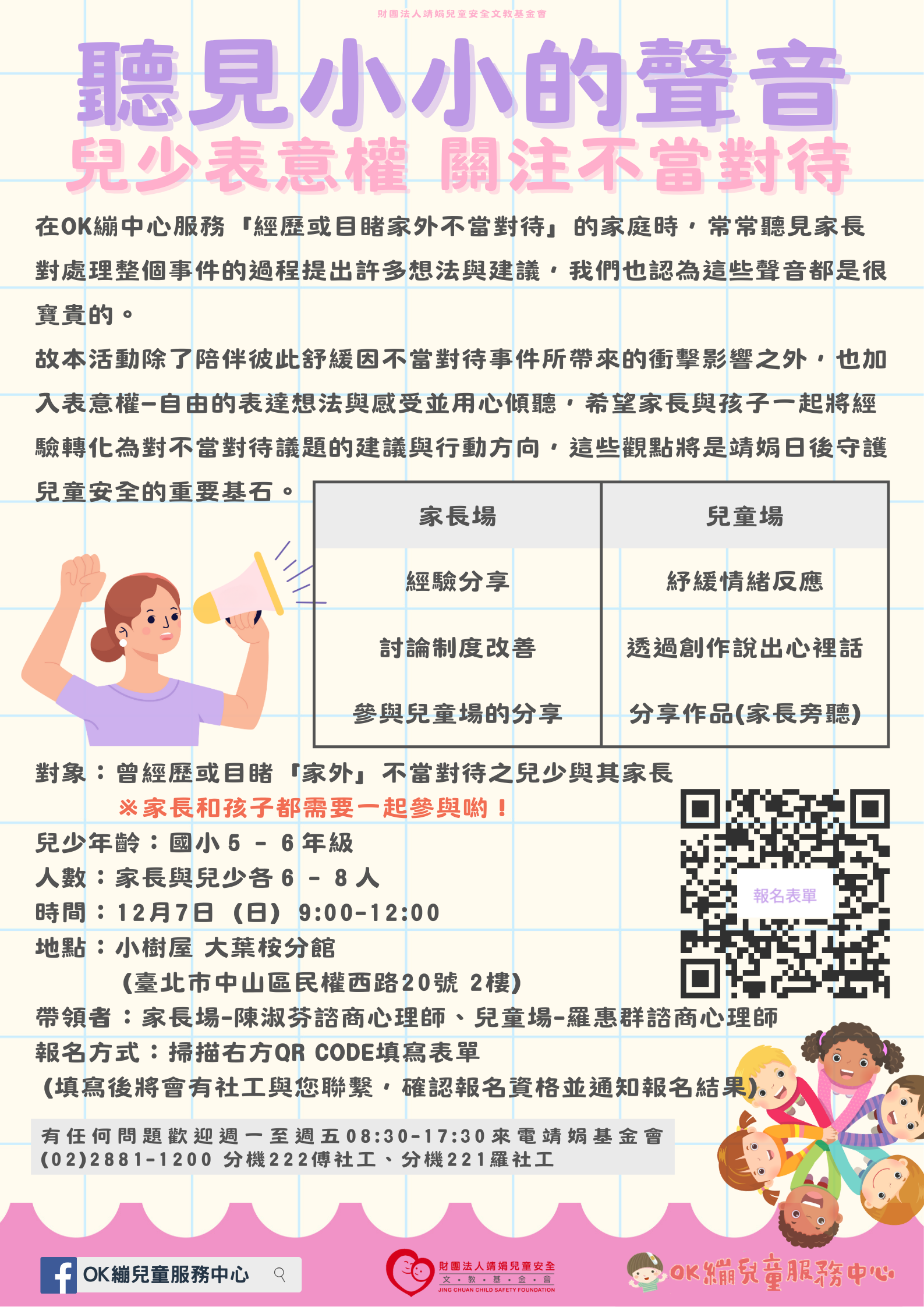 • 如有相關疑義,請洽該會羅社工及傅社工,聯絡電話:02-2881-1200分機221及222。
